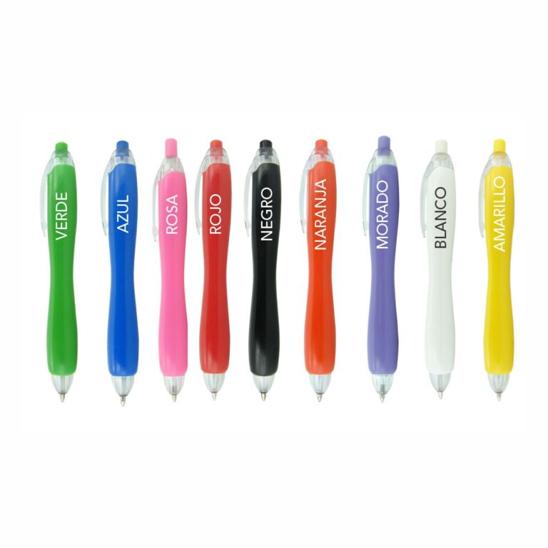 Bolígrafo de plástico de peculiar silueta con curvas.