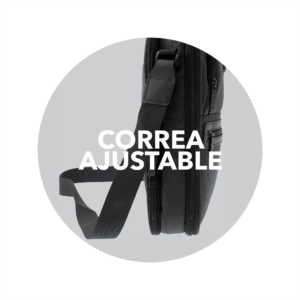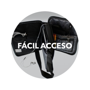 Cuenta con dos bolsas frontales con cierre y porta documentos con velcro.