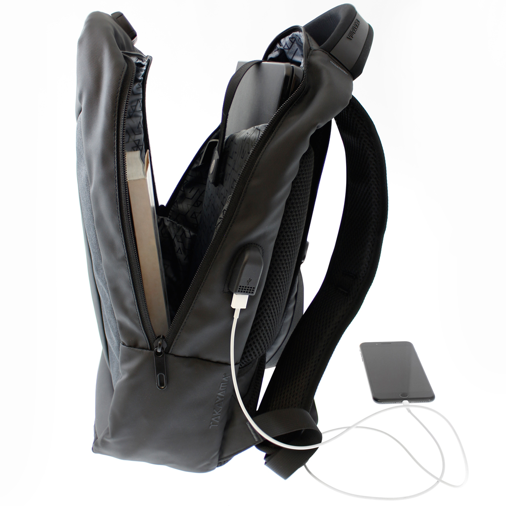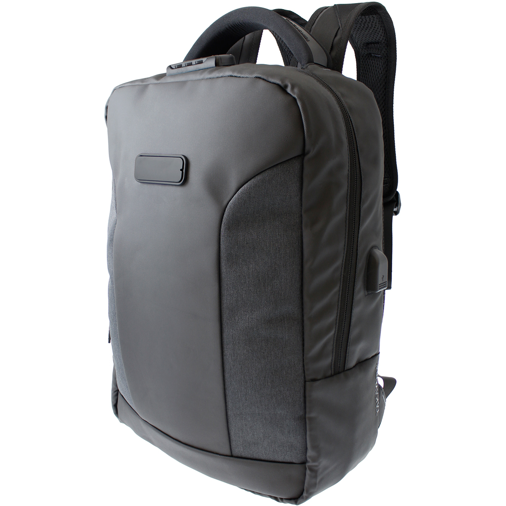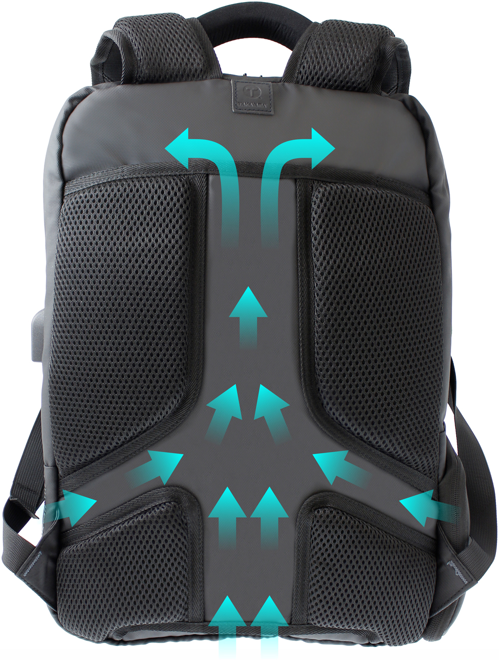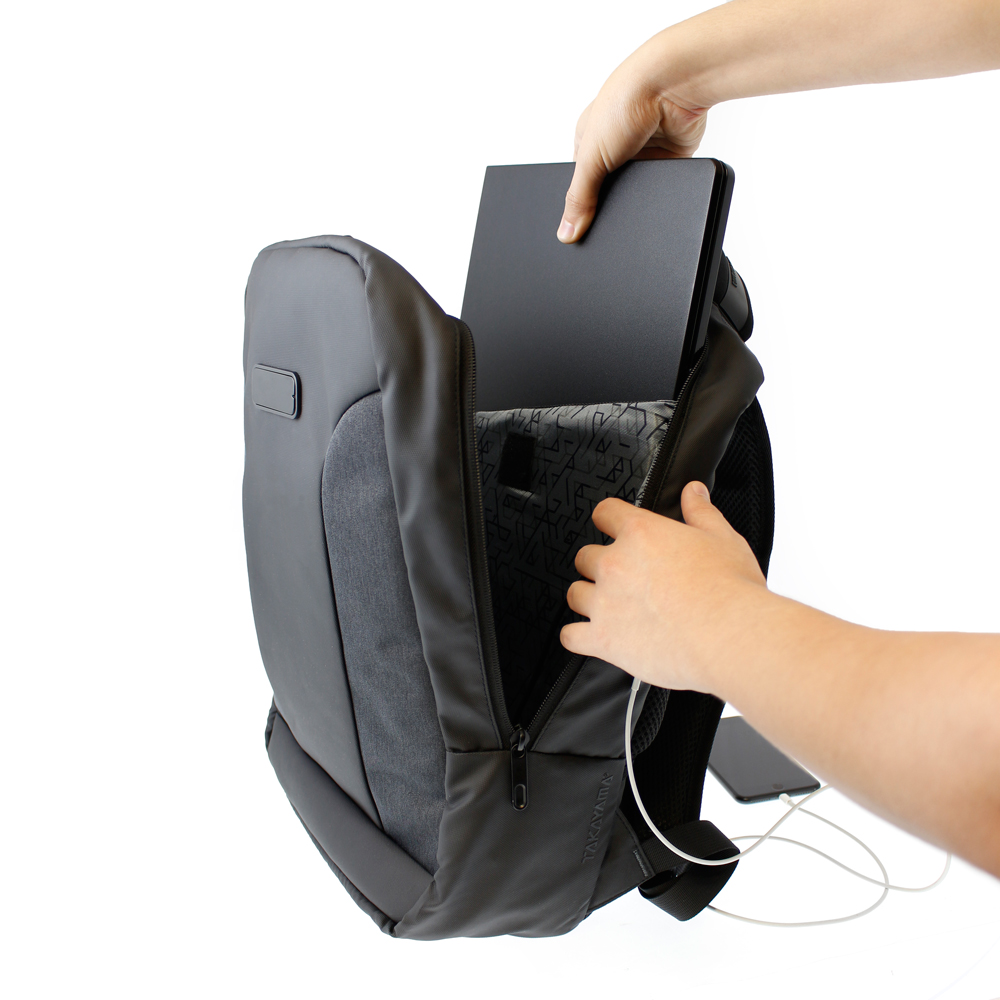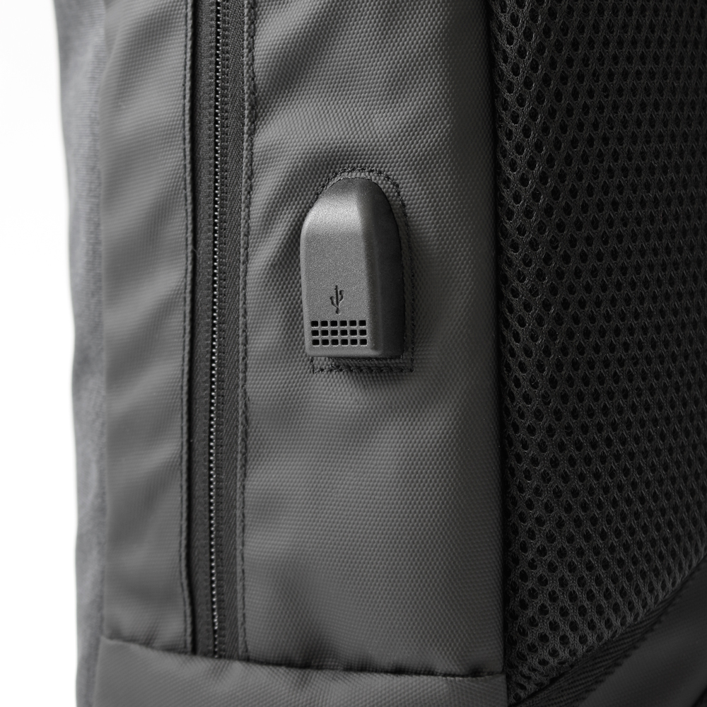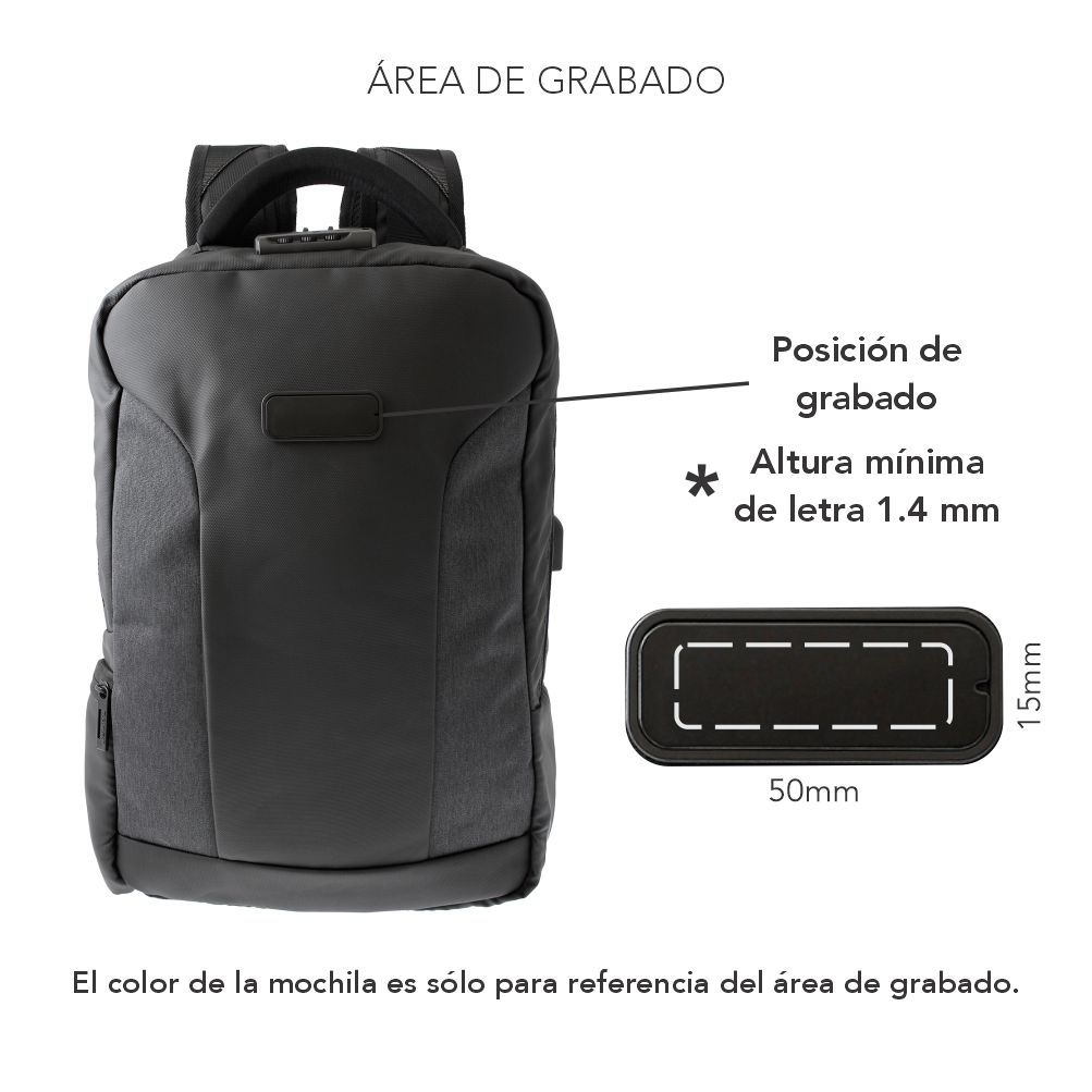 Puerto USB externo para cargar tus dispositivos sin abrir la mochila.