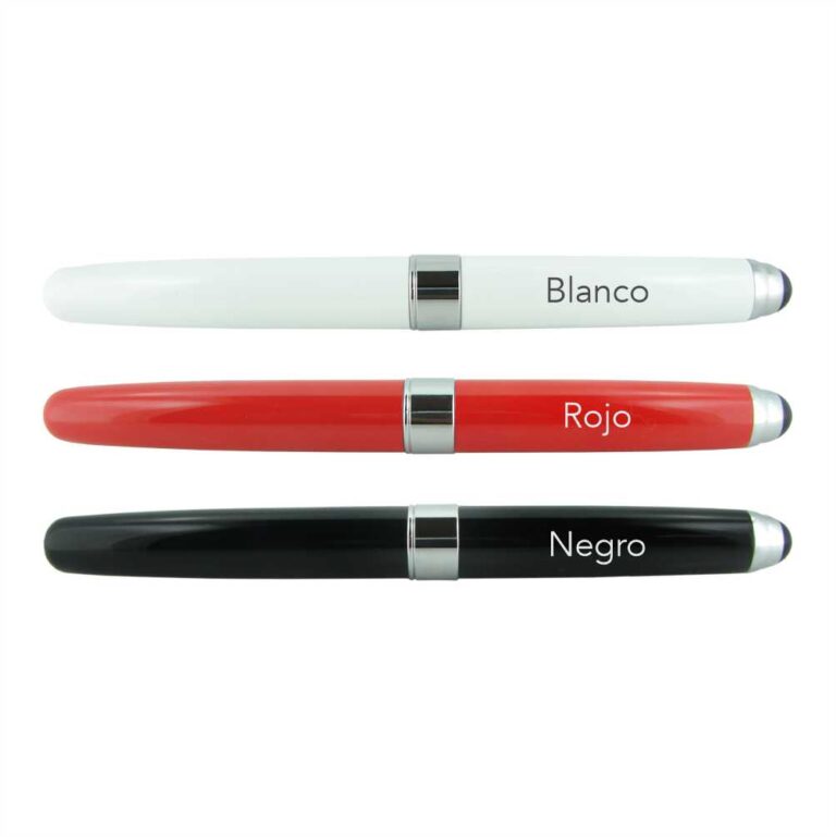 Blanco, negro y rojo al alto brillo con clip y detalles cromados.