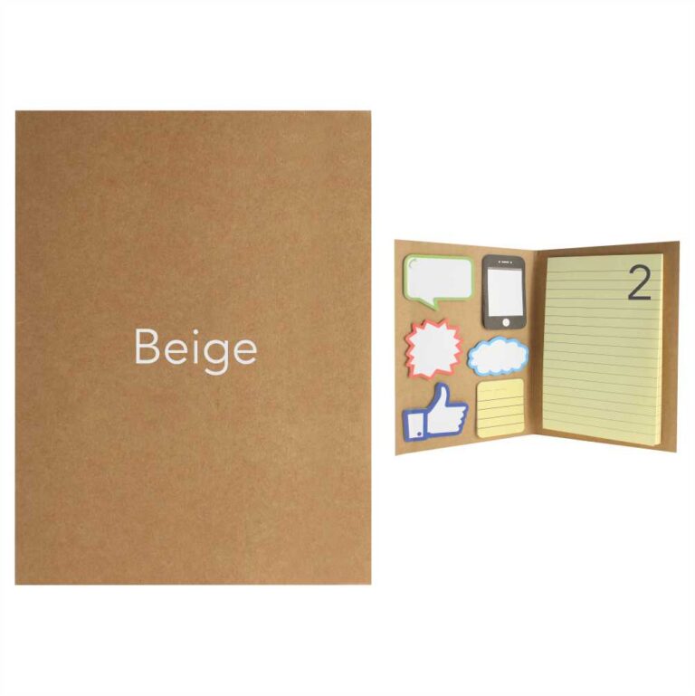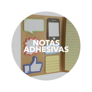 Notas Adhesivas con formas varias y divertidas contenidas en un folder de cartón que simula una libreta.
